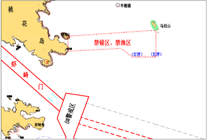 桃花岛以东部分海域禁锚区、禁渔区示意图